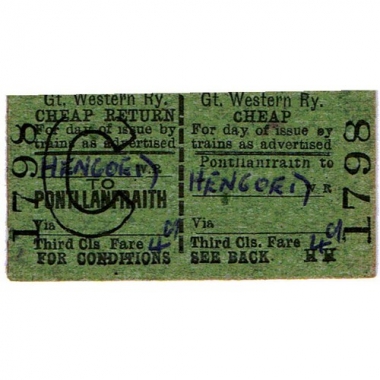 Travel Ticket, GWR, Pontllanfraith - Hengoed, Serial No 1798