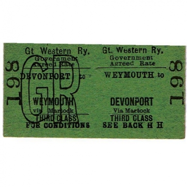 Travel Ticket, GWR, Weymouth - Devonport, Serial no 198