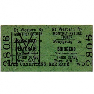 Travel Ticket, GWR, Penygraig - Bridgend via Llantrisant, Serial no 2806