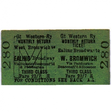 Travel Ticket, GWR, Ealing Broadway - West Bromwich, Serial no 280