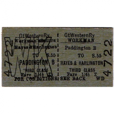Travel Ticket, GWR, Workman, Paddington - Hayes & Harlington, Serial no 4722