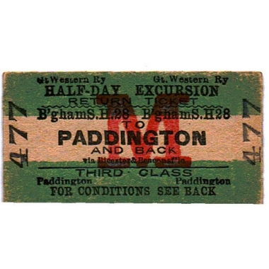 Travel Ticket, GWR, Birmington Snow Hill - Paddington, Serial no 477