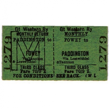 Travel Ticket, GWR, Fowey - Paddington, Serial no 1279