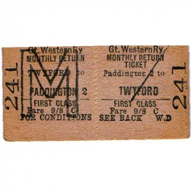 Travel Ticket, GWR, Paddington - Twyford, Serial no 241