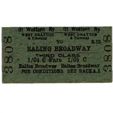 Travel Ticket, GWR, West Drayton - Ealing Broadway, Serial no 3808