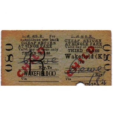 Travel Ticket, LM&SR, Wakefield (K) - Crewe, Serial no 080