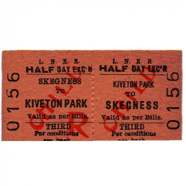Travel Ticket, LNER, Half day excursion, Kiveton Park - Skegness, Serial no 0156