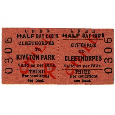 Travel Ticket, LNER, Half day excursion, Kiveton Park - Cleethorpes, Serial no 0306