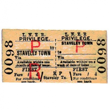Travel Ticket, LNER, Privilege, Staveley Town - Serial no 0098