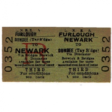 Travel Ticket, LNER, Furlough, Newark - Dundee (Tay Bridge), Serial no 0352