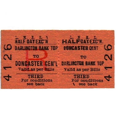 Travel Ticket, LNER, Half day excursion, Doncaster Central - Darlington Bank Top, Serial no 4126