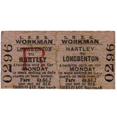 Travel Ticket, LNER, Workman, Hartley - Longbenton, Serial no 0296