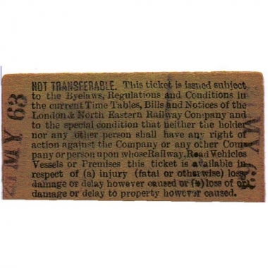 Travel Ticket, LNER, Gordon Hill (Only) - any LNER Suburban Station....., Serial no 1858