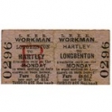Travel Ticket, LNER, Workman, Hartley - Longbenton, Serial no 0296