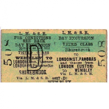 Travel Ticket, LM&SR, Shirebrook - St Pancras - Wembley, Serial no 508