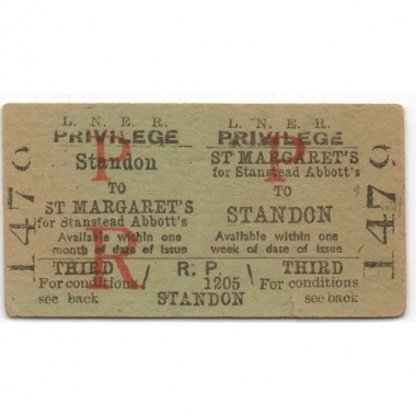 Railway Ticket, LNER, St Margaret's - Standon, Serial No 1479