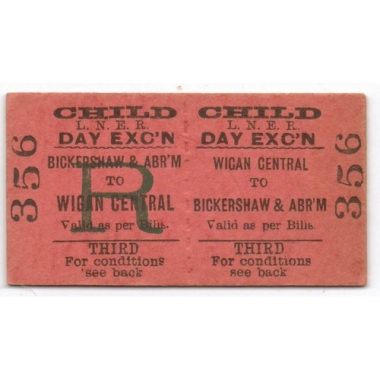 Railway Ticket, LNER, Wigan Central - Bickershaw & Abr'm, Serial No 356