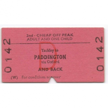 Railway Ticket, BRB, Tackley - Paddington, Adult and One Child, Serial No. 0142