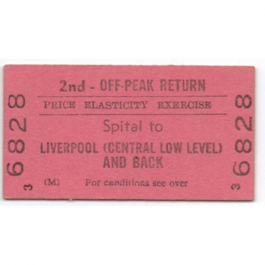 Railway Ticket, BRB, Spital - Liverpool (Central Low Level), Price Elasticity Exercise, Serial No. 6828