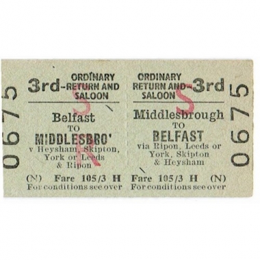 Travel Ticket, BR (W), Middlesbrough - Belfast, Serial No 0675