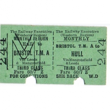 Travel Ticket, BR (W), Bristol T.M - Hull, Serial No 244
