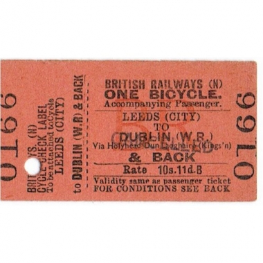 Travel Ticket, BR (N), Leeds (City) - Dublin (W.R.), One Bicycle, Serial No 0166