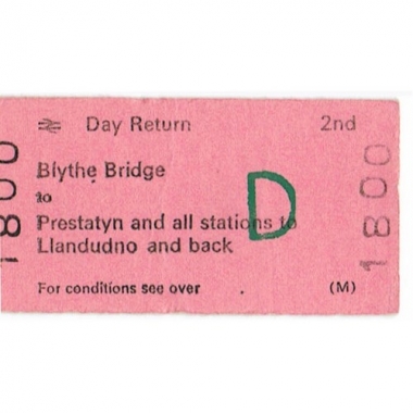 Travel Ticket, BRB (M), Blythe Bridge - Prestatyn, Serial No 1800
