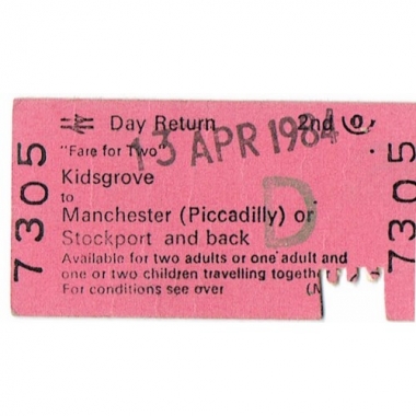 Travel Ticket, BRB (M), Fare for Two, Kidsgrove - Manchester (Piccadilly), Serial No 7305