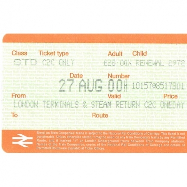 Travel Ticket, BR, London (Fenchurch St) - Shoeburyness, Serial No 10157