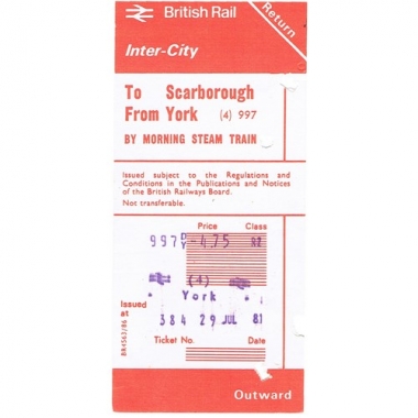 Travel Ticket, BR, Morning Steam Train, Scarborough - York, Serial No 384