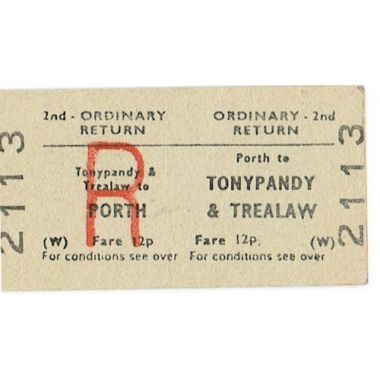 Travel Ticket, BRB(W), Porth - Tonypandy & Trealaw, Serial No 2113