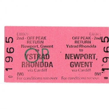 Travel Ticket, BRB(W), Ystrad Rhondda - Newport, Gwent, Serial No 1965