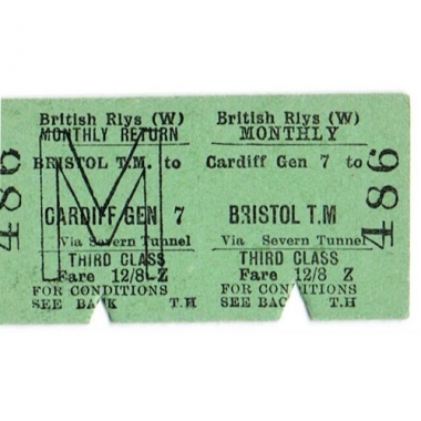 Travel Ticket, BR(W), Cardiff General - Bristol T.M., Serial No 486