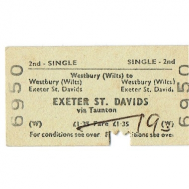 Travel Ticket, BRB(W), Westbury (Wilts) - Exeter St. Davids, Serial No 6950