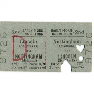 Travel Ticket, BTC(M), Nottingham (Midland) - Lincoln (St. Marks), Serial No 9726