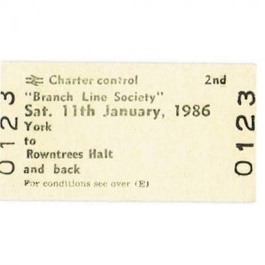 Travel Ticket, BRB(E), Branch Line Society, York - Rowntrees Halt, Serial No 0123