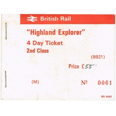 Travel Ticket, BR(M), Highland Explorer 4 day Ticket, Gerrards Cross - Mallaig, Serial No 0061