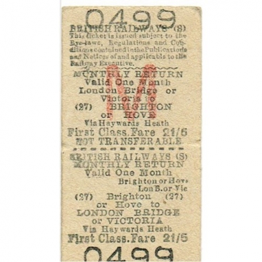 Travel Ticket, BR(S), London Bridge or Victoria - Brighton or Hove, Serial No 0499
