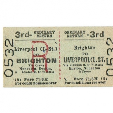Travel Ticket, BRB(S), Brighton - Liverpool (Lime Street), Serial No 0532
