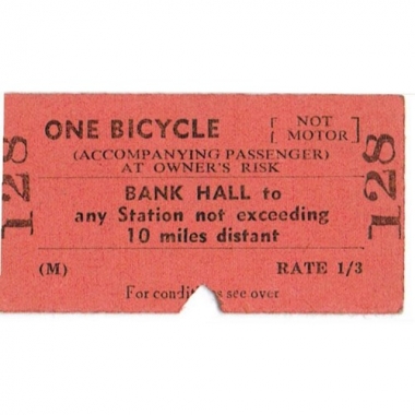 Travel Ticket, BTC(M), Bank Hall, One Bicycle, Serial No 128
