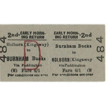 Travel Ticket, BTC(W), Burnham Bucks - Holborn (Kingsway), Serial No 484