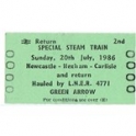 Travel Ticket, BRB(E), Special Steam Train hauled by LNER 4771, Newcastle - Hexham - Carlisle, Green Arrow, Serial No 0000