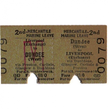 Travel Ticket, BRB(H), Dundee (West) - Liverpool (Exchange), Serial No 0079
