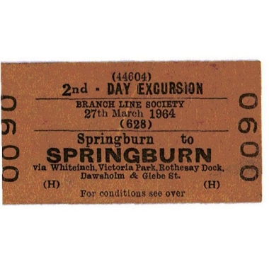 Travel Ticket, BRB(H), Day Excursion, Branch Line Society, Springburn - Springburn, Serial No 0090
