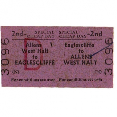 Travel Ticket, BTC(N), Eaglescliffe - Allens West Halt, Serial No 3096