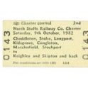 Travel Ticket, BRB (M), North Staffs Railway Co Charter, Cheddleton to Keighley, Serial No 0143