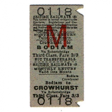 Travel Ticket, BR(S), Bodiam - Crowhurst, Serial No 0118