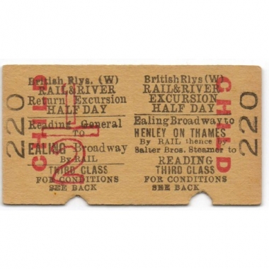 Railway Ticket, BR (W), Salter Bros Steamer, Ealing Broadway - Henley on Thames - Reading, Rail and River Excursion Half Day, Serial No 220