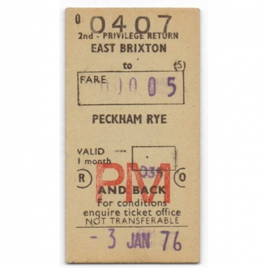 Railway Ticket, BRB (S), East Brixton - Peckham Rye, Serial No 0407