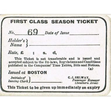 Season Ticket, LNER, Boston - , Serial No 69